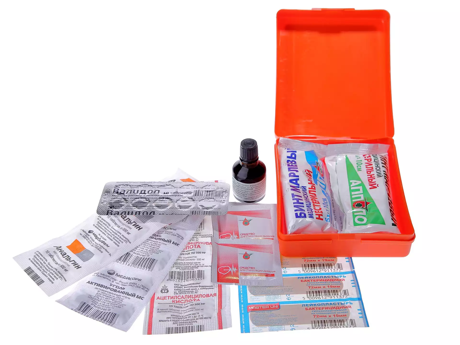 - Она содержит различные медикаменты, такие как антисептики, бинты, пластыри, аспирин, антигистаминные препараты и другие необходимые средства.