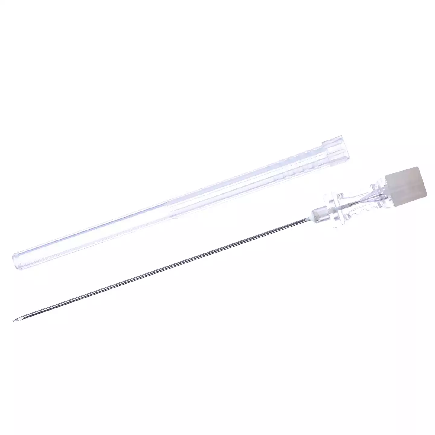 Ассортимент спинальных игл Квинке включает калибры от 18G до 29G с длиной канюли от 25 до 150 мм, что позволяет подобрать оптимальный размер в зависимости от антропометрических характеристик пациента и глубины залегания субарахноидального пространства. Тонкие иглы 25-27G минимизируют риск постпункционной головной боли, связанной с ликвореей через дефект твердой мозговой оболочки.