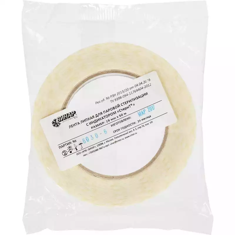 Лента индикаторная Стерит, для контроля паровой стерилизации, размер19мм х 50м, липкая, Винар НПФ (РОССИЯ)