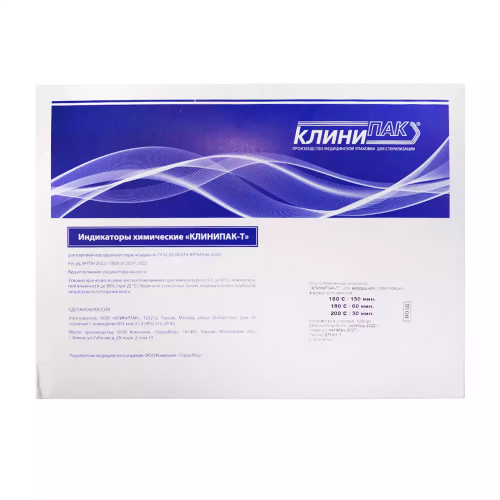 Индикатор стерилизации КЛИНИПАК-Т универсальный, 4 класс (160C/150мин.,180C/60мин.,200C/30мин), самоклеющийся, упаковка 1000 тестов, с журналом, для контроля внутри и снаружи, КЛИНИПАК (РОССИЯ)