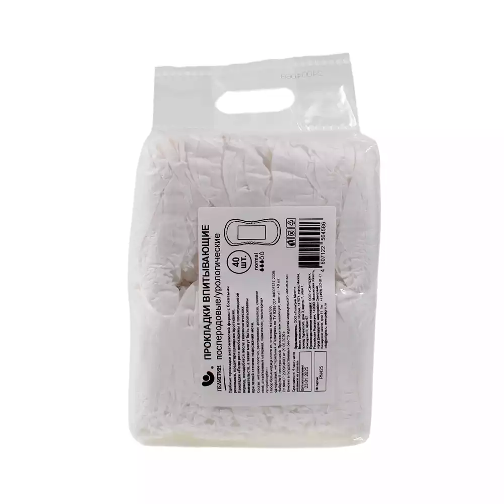 Прокладки женские впитывающие Пелигрин normal (послеродовые), упаковка 40 шт, впитываемость 400мл, Пелигрин Матен