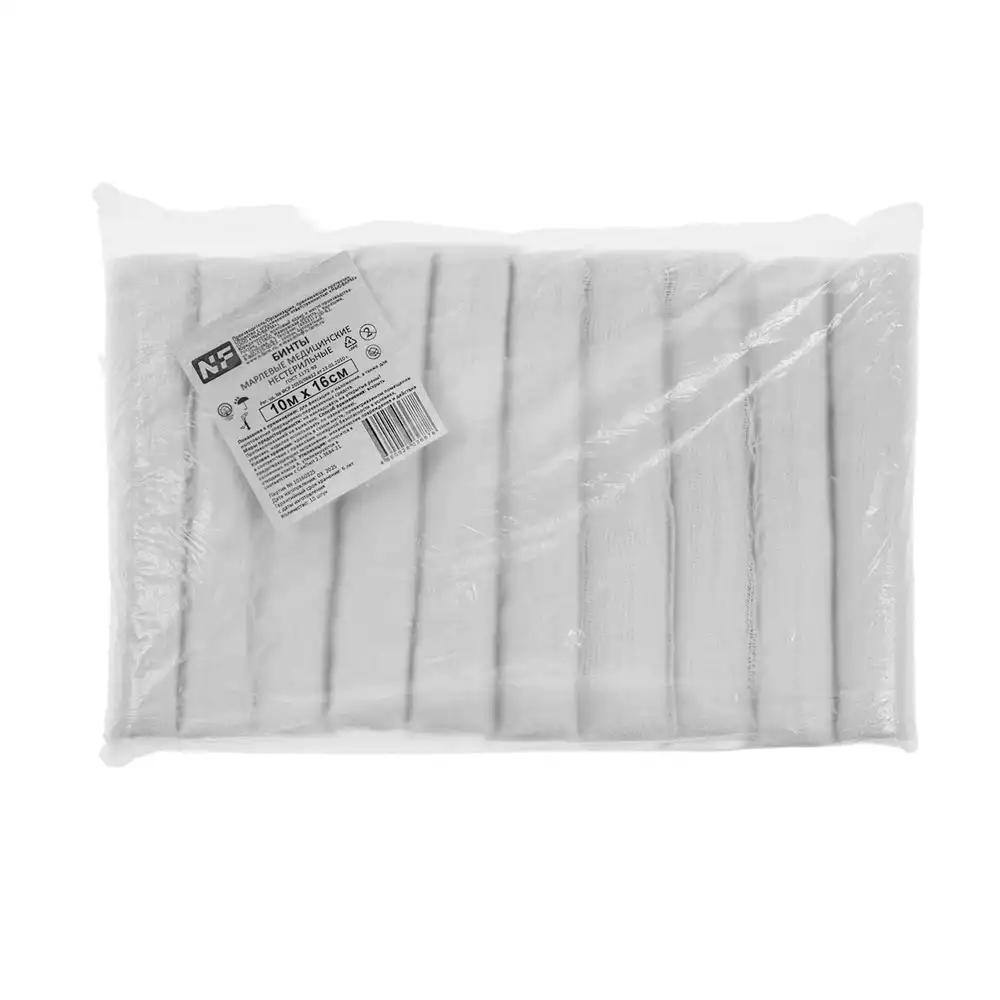 Бинт NF марлевый, размер 10м*16см, плотность 36г/м2, нестерильный, Ньюфарм (РОССИЯ), 10 шт