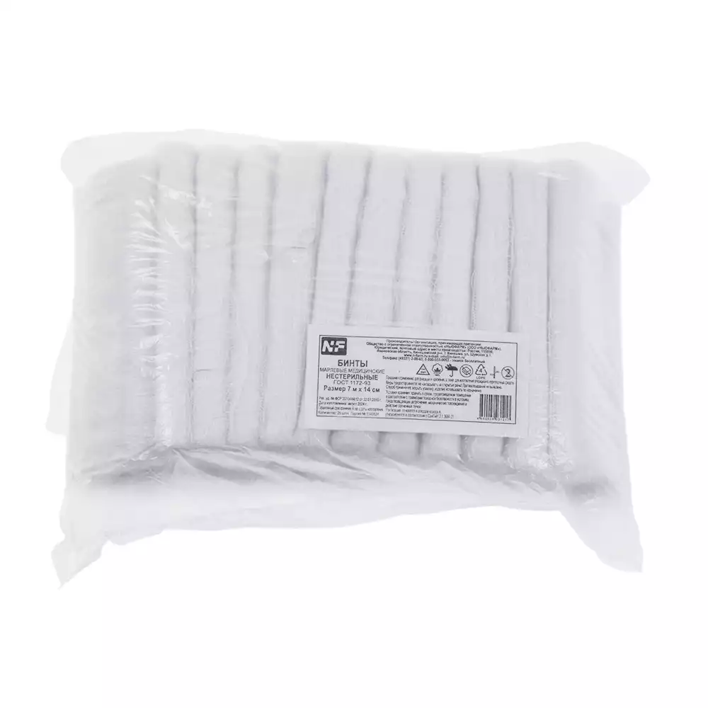 Бинт NF марлевый, размер 7м*14см, плотность 32г/м2, нестерильный, Ньюфарм (РОССИЯ), 25 шт
