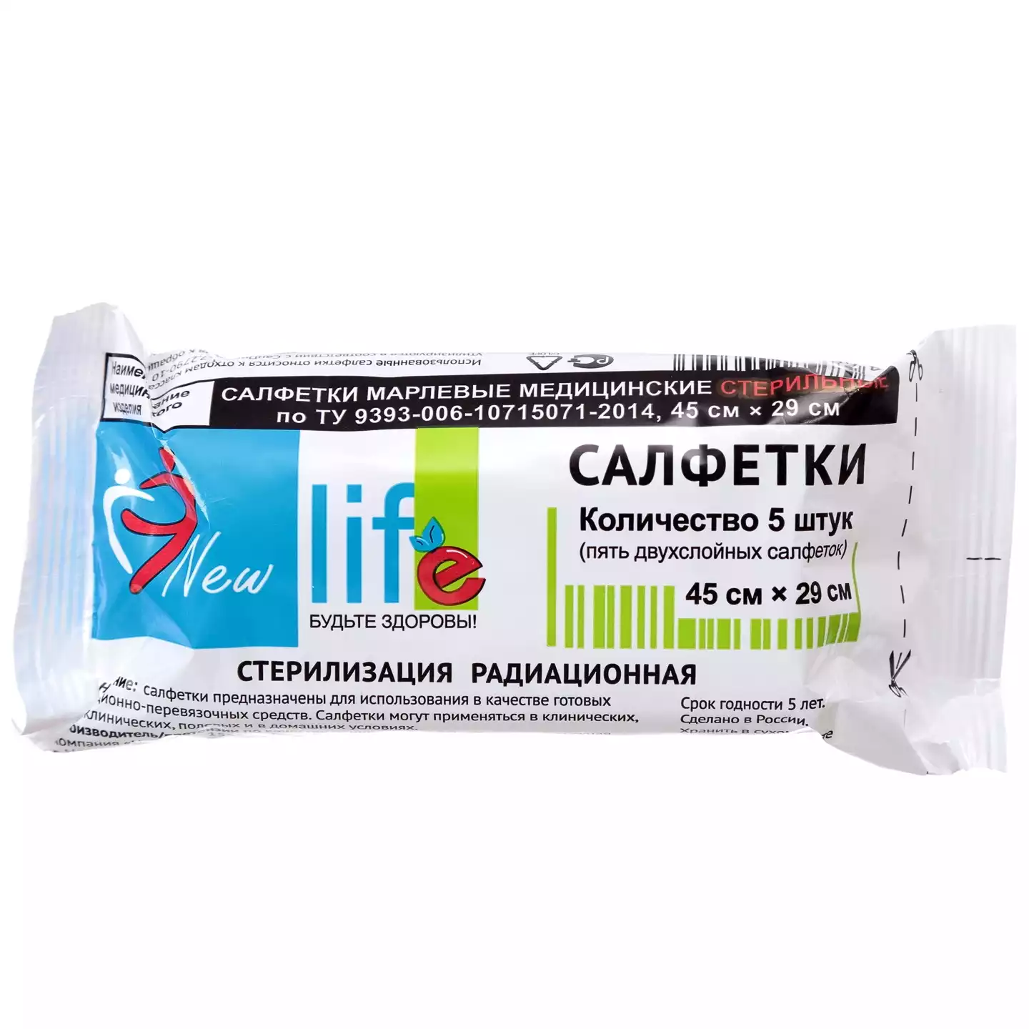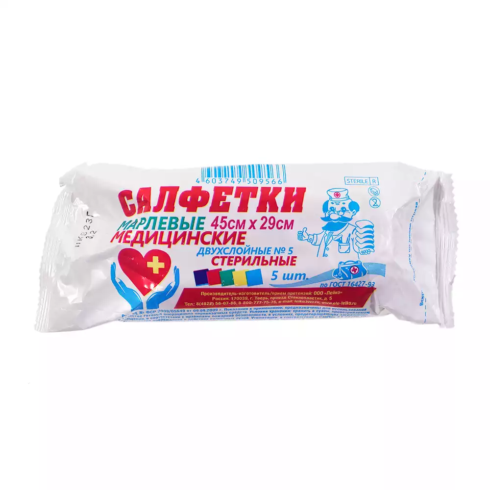Салфетка марлевая №5, 2-х слойная размер 45*29см Лейко плотность 32г/м2, стерильная, Лейко (РОССИЯ)