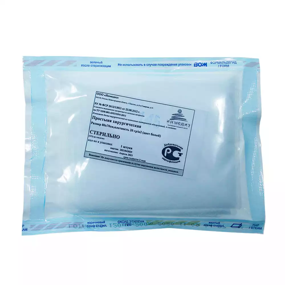 Простыня 70*80см, материал СМС 20г/м2, стерильная, белая, Инмедиз (РОССИЯ)