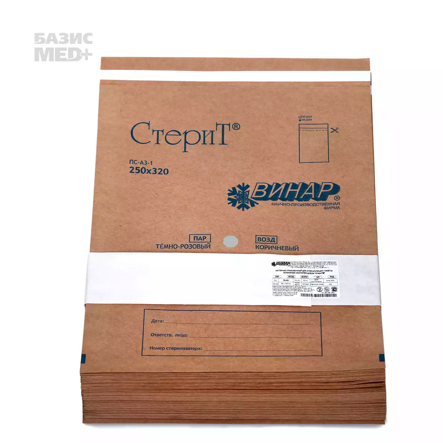 Пакет СтериТ, размер 250*320мм, бумажный, крафт, самоклеющийся, упаковка 100шт, Винар НПФ