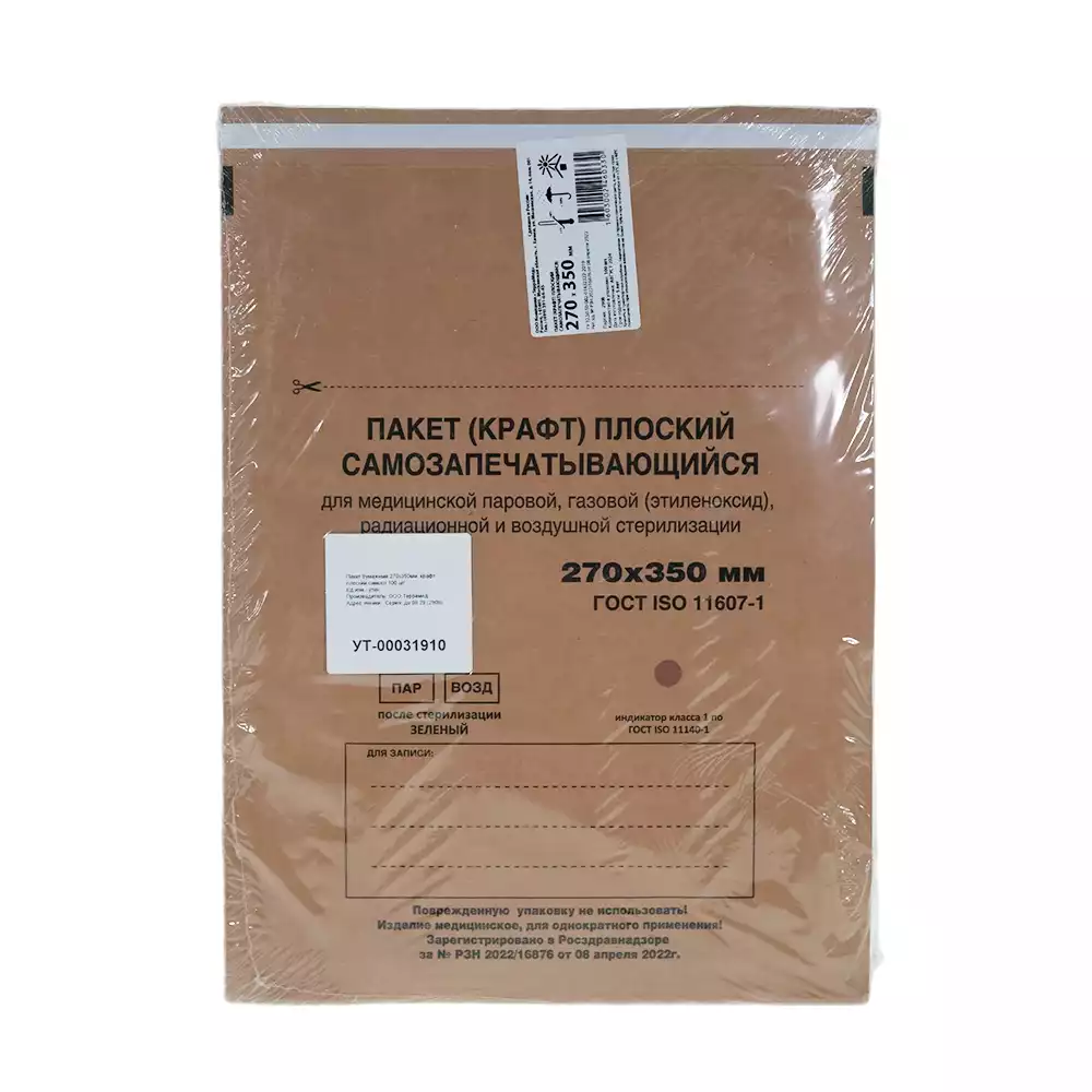 Пакет ТерраМед, размер 270*350мм, бумажный, крафт, самоклеющийся, упаковка 100шт, ООО Террамед (РОССИЯ)