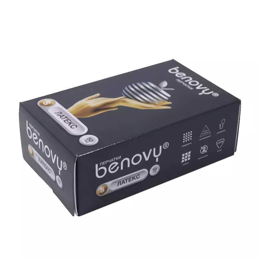 Перчатки BENOVY, размер S, латексные, неопудренные, текстурированные, нестерильные, упаковка 50 пар, Sri Trang Gloves (Thailand) Public Company Limited (ТАИЛАНД)