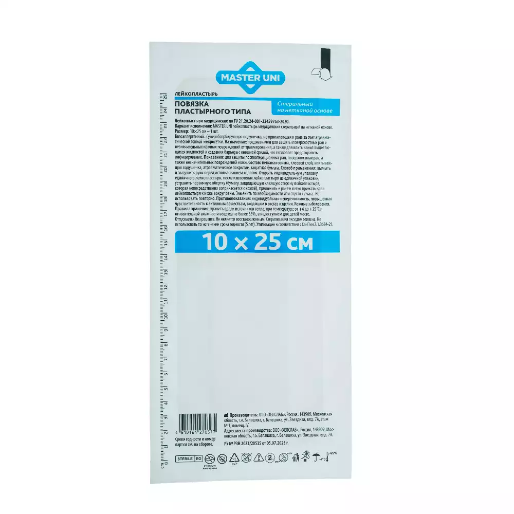 Повязка Master Uni нетканная, размер 10,0*25,0см, стерильная, ООО "ХЕЛСЛАБ" (РОССИЯ)
