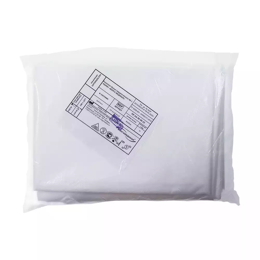 Простыня 90х90см, материал СМС 25г/м2, нестерильная, цвет - белый,голубой, Волга Медикал НПП (РОССИЯ)