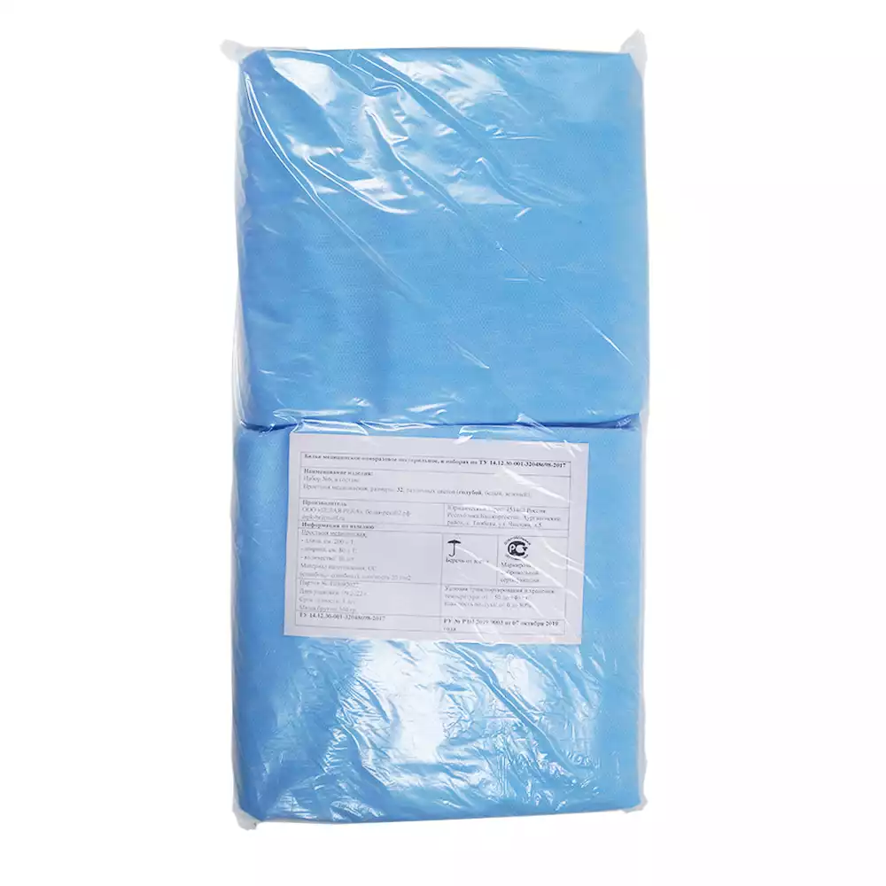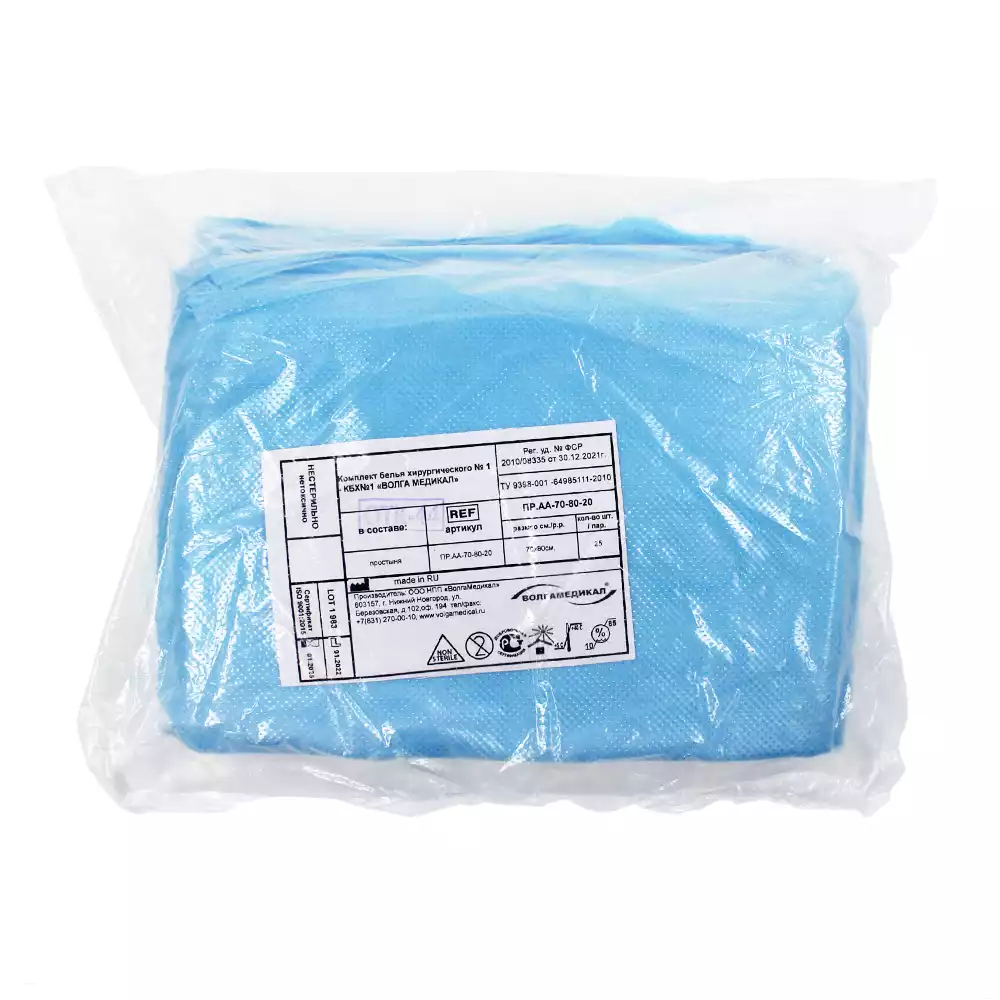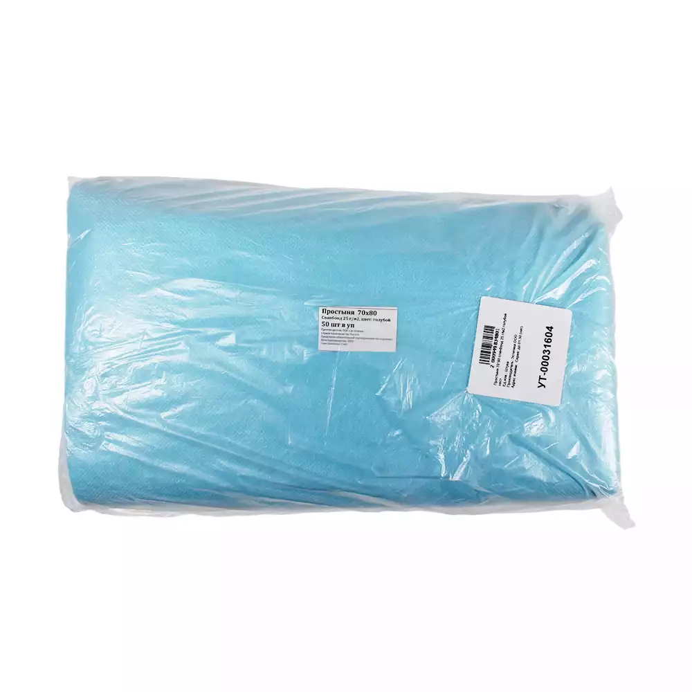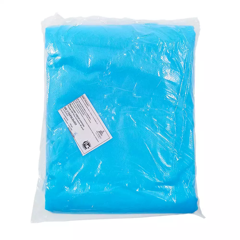 Простыня 70*80см, материал Спанбонд 20г/м2, нестерильная, цвет голубой, с РУ, Волга Медикал НПП (РОССИЯ)