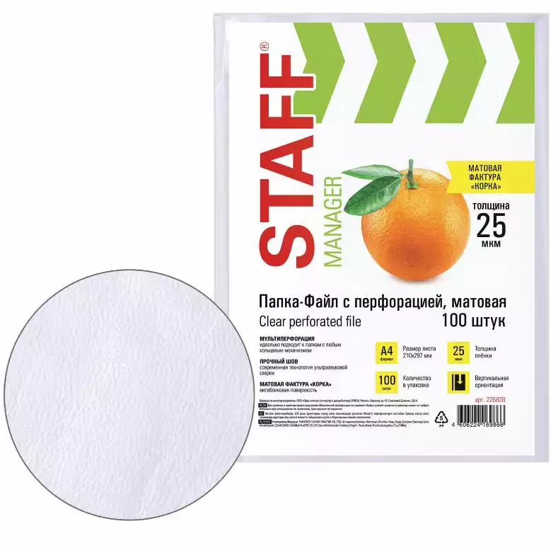 Папки-файлы перфорированные А4 STAFF "ЭКОНОМ", КОМПЛЕКТ 100 шт., матовые, 25 мкмBRAUBERG