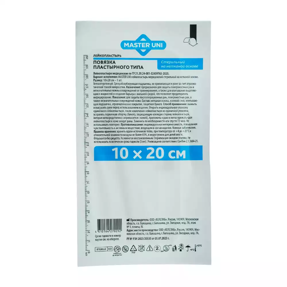 Повязка Master Uni нетканная, размер 20,0*10,0см, стерильная, ООО "ХЕЛСЛАБ" (РОССИЯ)