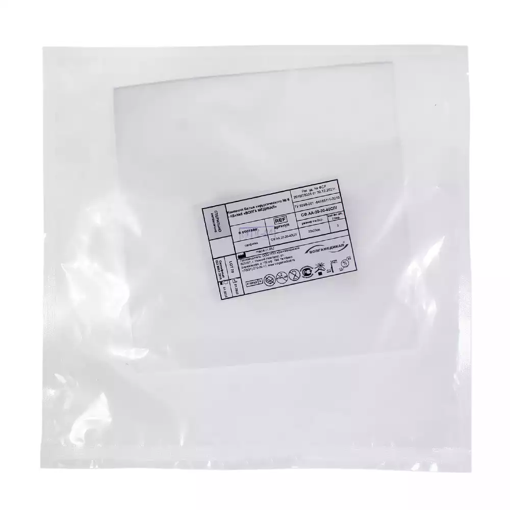 Салфетка 20*20см, материал Спанлейс 40г/м2, стерильная, белая, упаковка 5шт, Волга Медикал НПП (РОССИЯ)