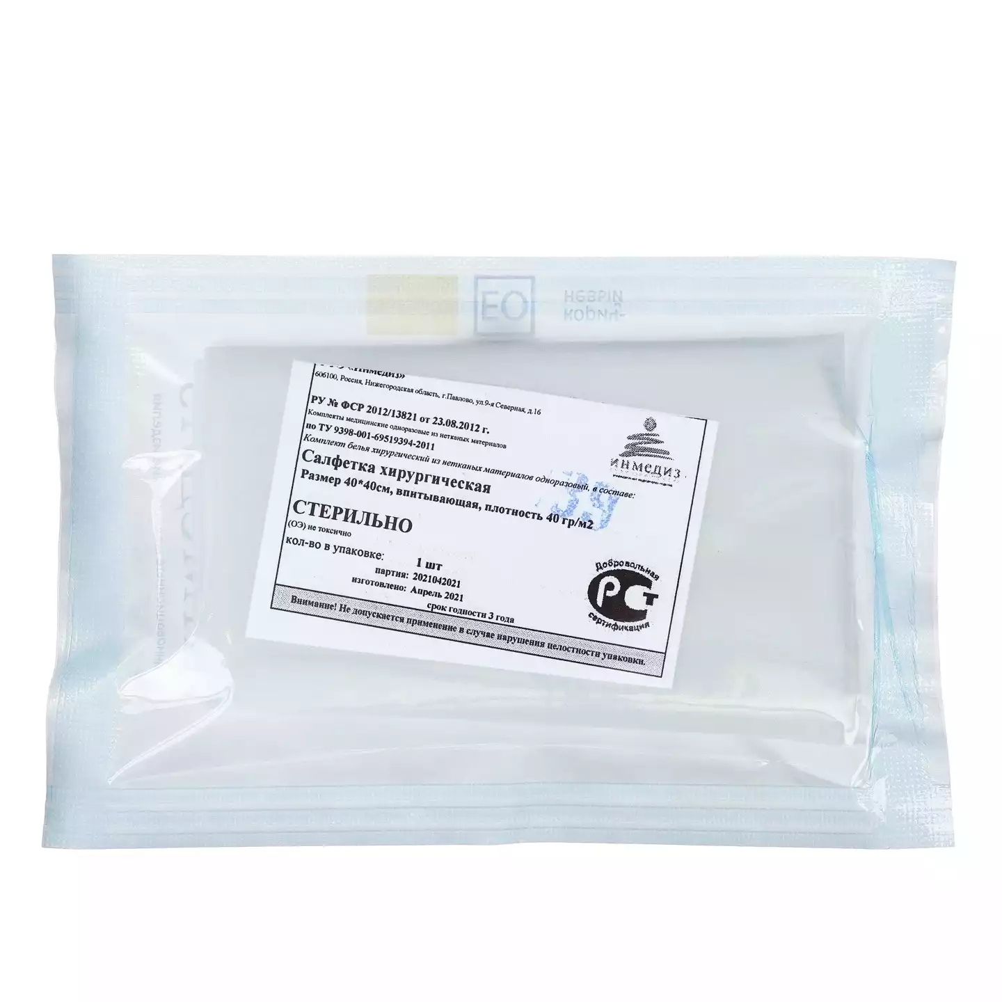 Салфетка 40*40см, материал спанлейс 40г/м2, стерильная, белая, Инмедиз (РОССИЯ)