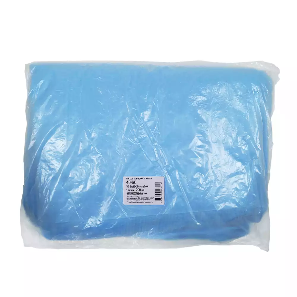 Салфетка 60*60см, материал СМС 25г/м2, нестерильная, голубая, Волга Медикал НПП (РОССИЯ)