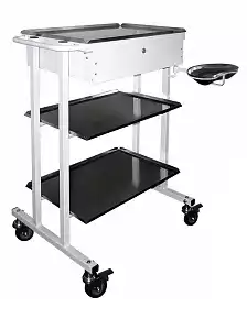 Столик МСК-548 манипуляционный передвижной метал. с двумя полками и выдвижным ящиком, колеса резиновые, размер 645х425х920мм, Медстальконструкция